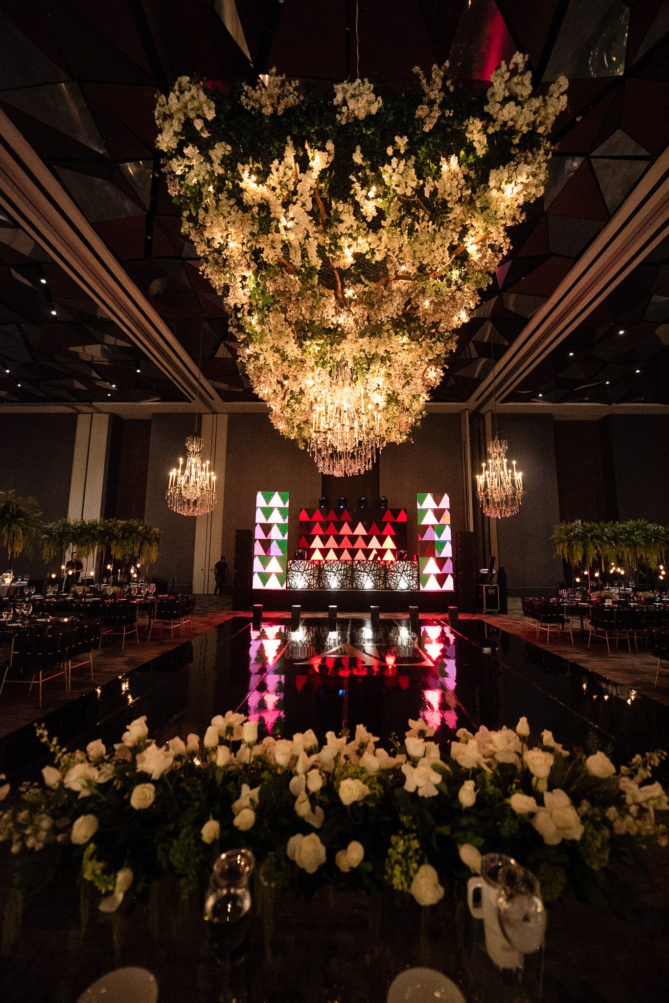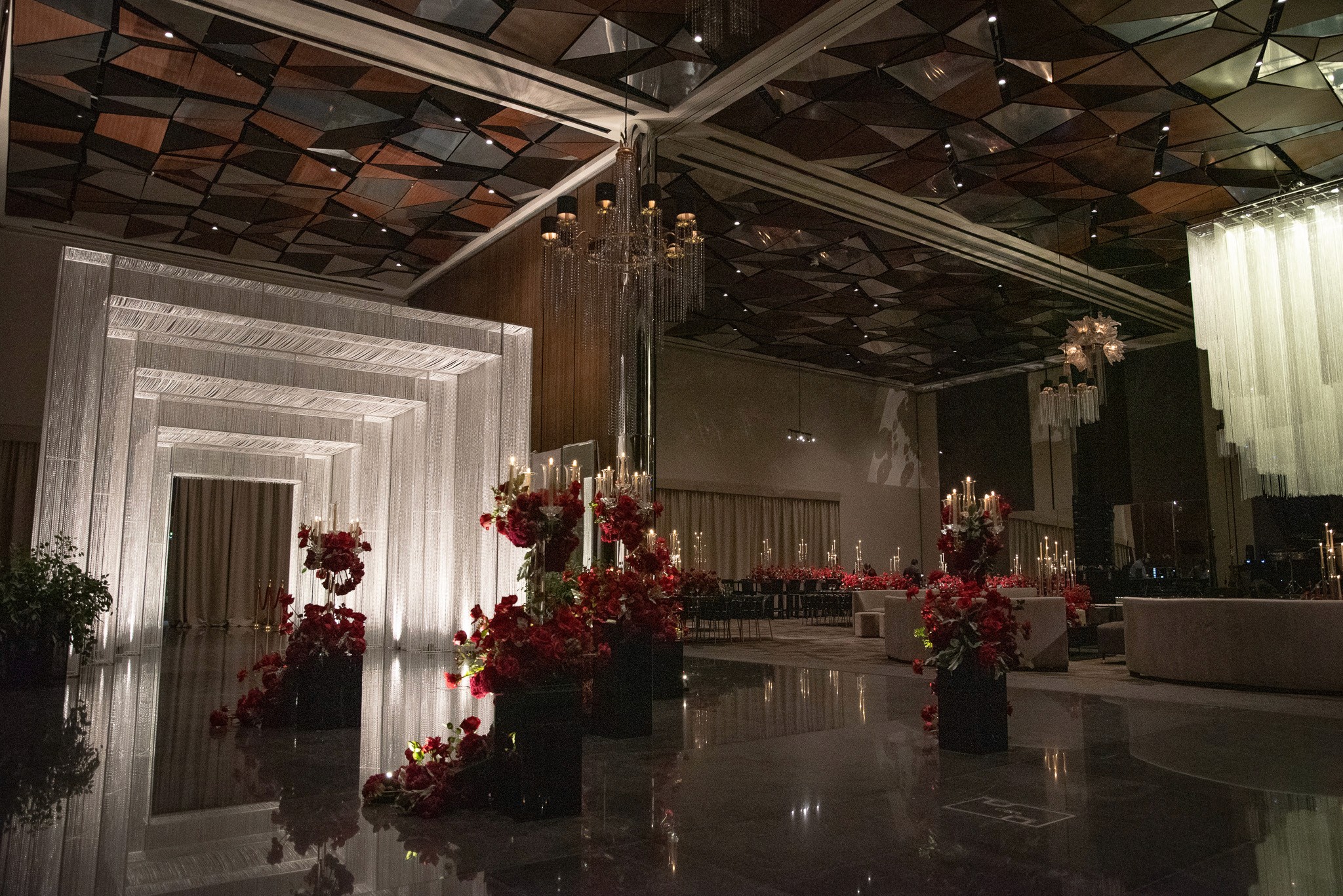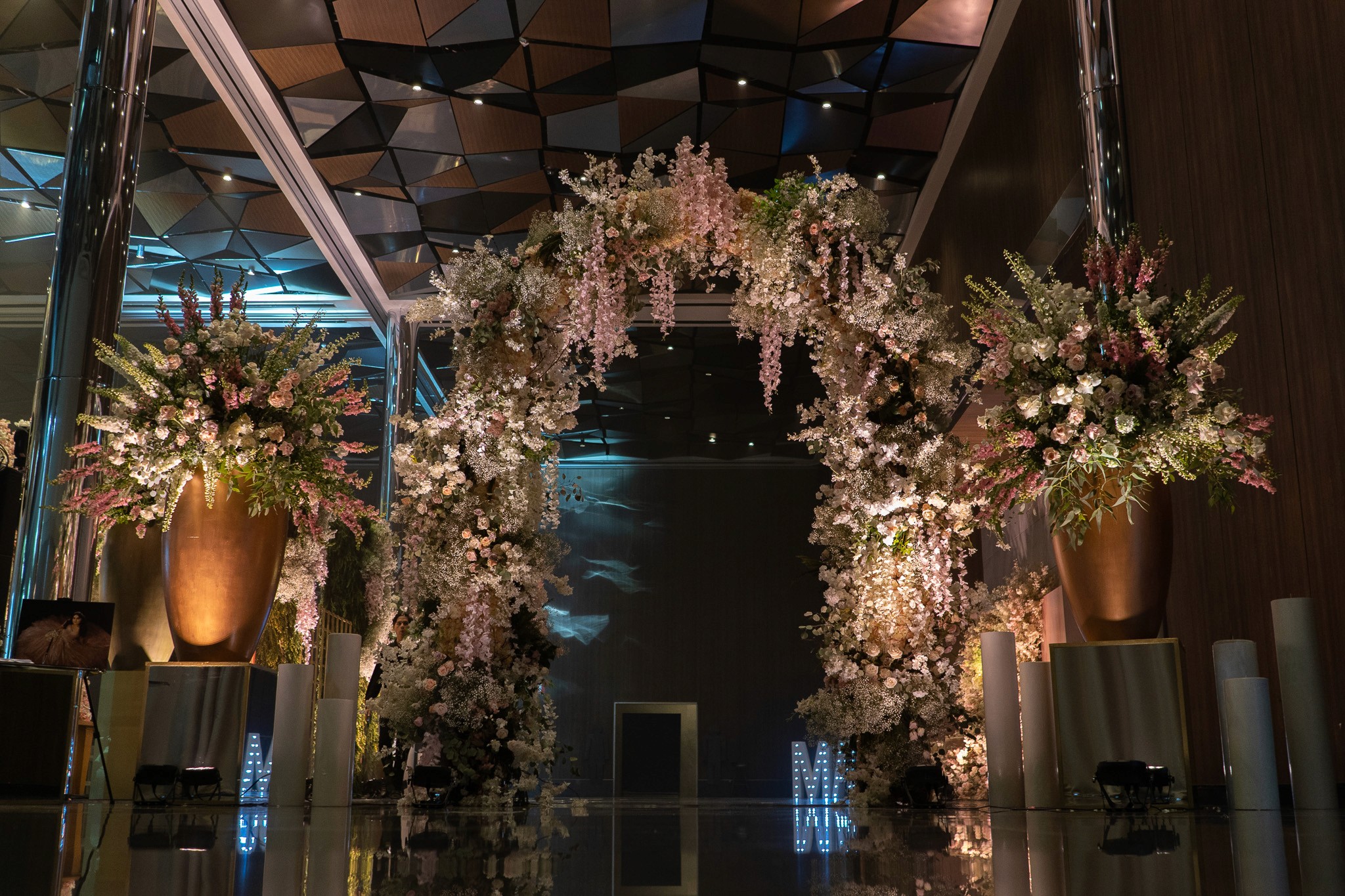 La boda de Mariana & Luis se celebró en los Salones Airo A+B, con un montaje espectacular de banquete con pista de baile para 300 invitados. La decoración floral, la iluminación arquitectónica y la vista panorámica hicieron de la noche una experiencia mágica.