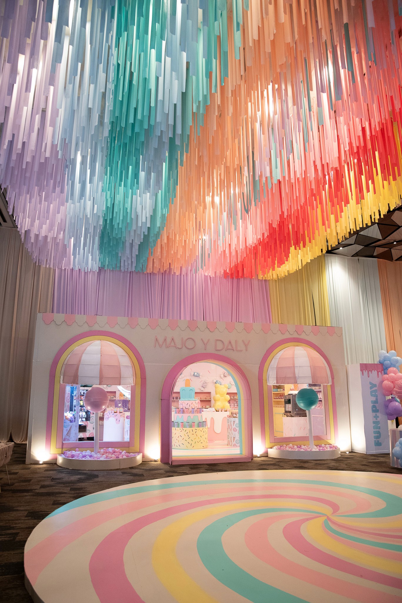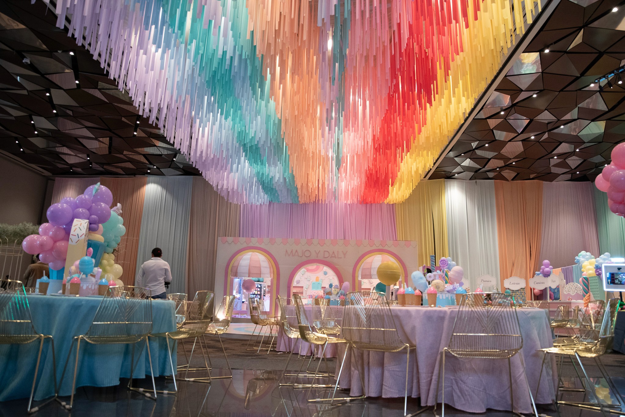 La fiesta de Majo y Daly fue una celebración vibrante y llena de fantasía que convirtió nuestros salones en un universo de color y alegría. Cada rincón estuvo pensado para sorprender: desde el impresionante techo cubierto de cintas en tonos pastel hasta los rincones temáticos llenos de globos, juegos y estaciones interactivas. La decoración creó una atmósfera mágica que transportó a todos los invitados a un mundo de ensueño, haciendo de este evento una experiencia inolvidable tanto para los niños como para los adultos.