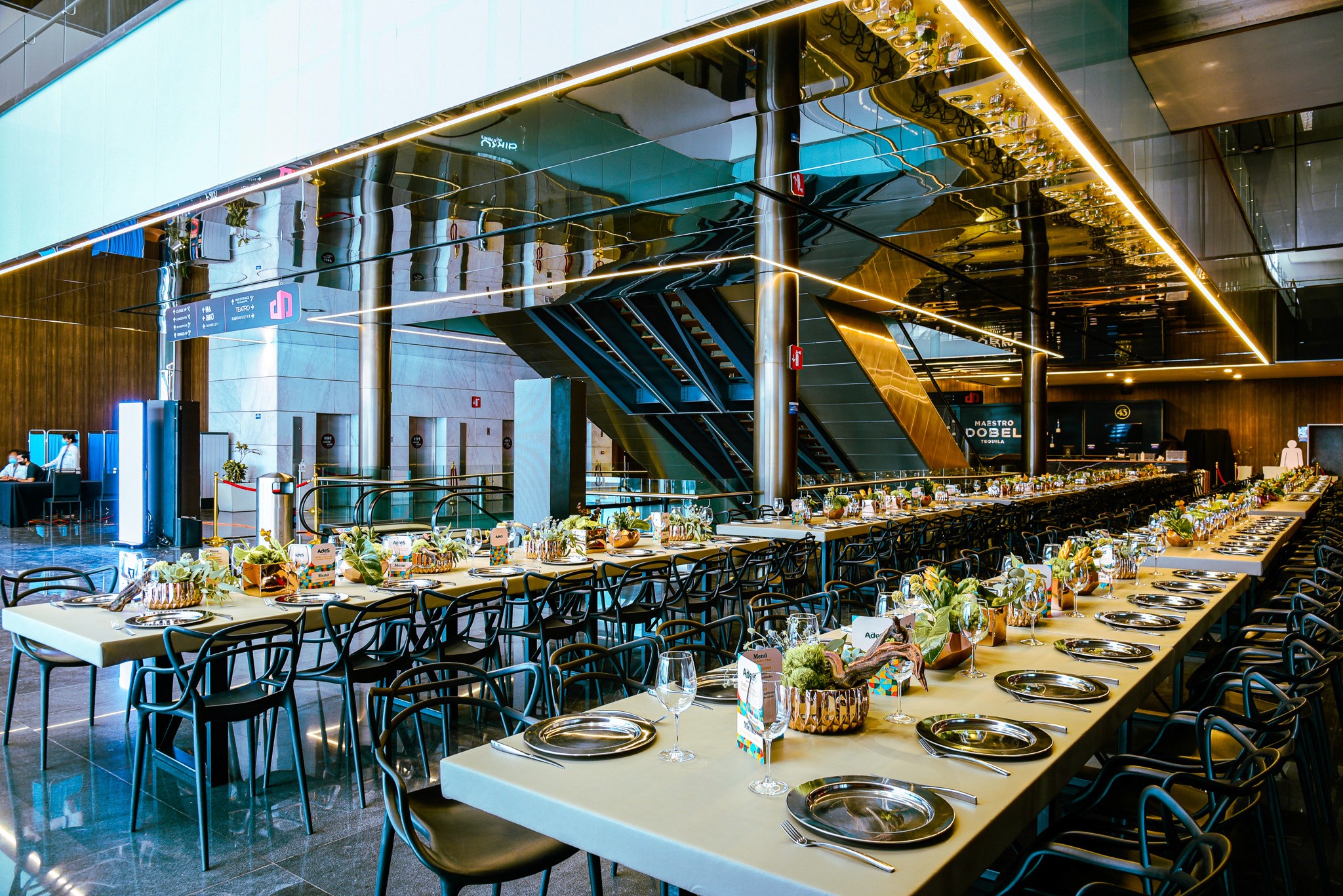 Con 218 m², altura de 8 m y la misma infraestructura técnica avanzada —incluidos 80 puntos de colgado de hasta 80 kg y 5 pasos de gato— este salón es ideal para eventos que buscan un ambiente contemporáneo, flexible y elegante.